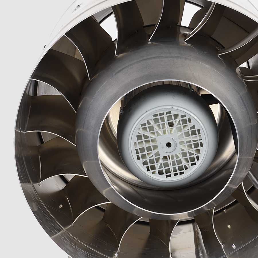 The high efficiency diagonal mixed flow impeller delivers maximum efficiency and operational performance offering a significant reduction in the running costs against a comparable centrifugal fan.