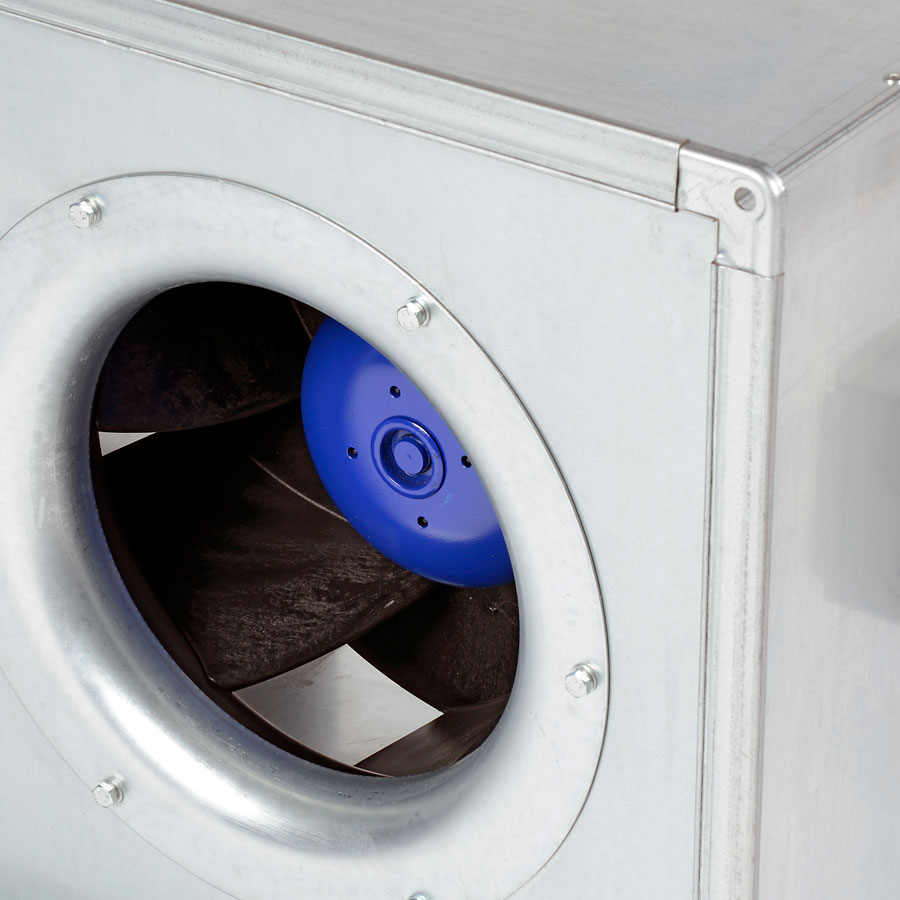 Impellers shall be made from high-performance composite material with backward-curved, aerofoil section blades. Three-dimensional blade geometry with diagonal air discharge shall provide high efficiency and low acoustic emissions, directly driven by the motor to provide a smooth airflow through the unit.