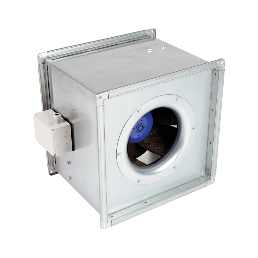 The single range of units shall have an AC external rotor motor fitted as standard. The motor contains sealed for life bearings. Thermal Class of motors to THCL 130 or 155 dependent on size. All motors are suitable for use in ambient air conditions up to +60°C. Electrical connection shall be via an IP55 terminal box mounted on the side for easy customer connection.