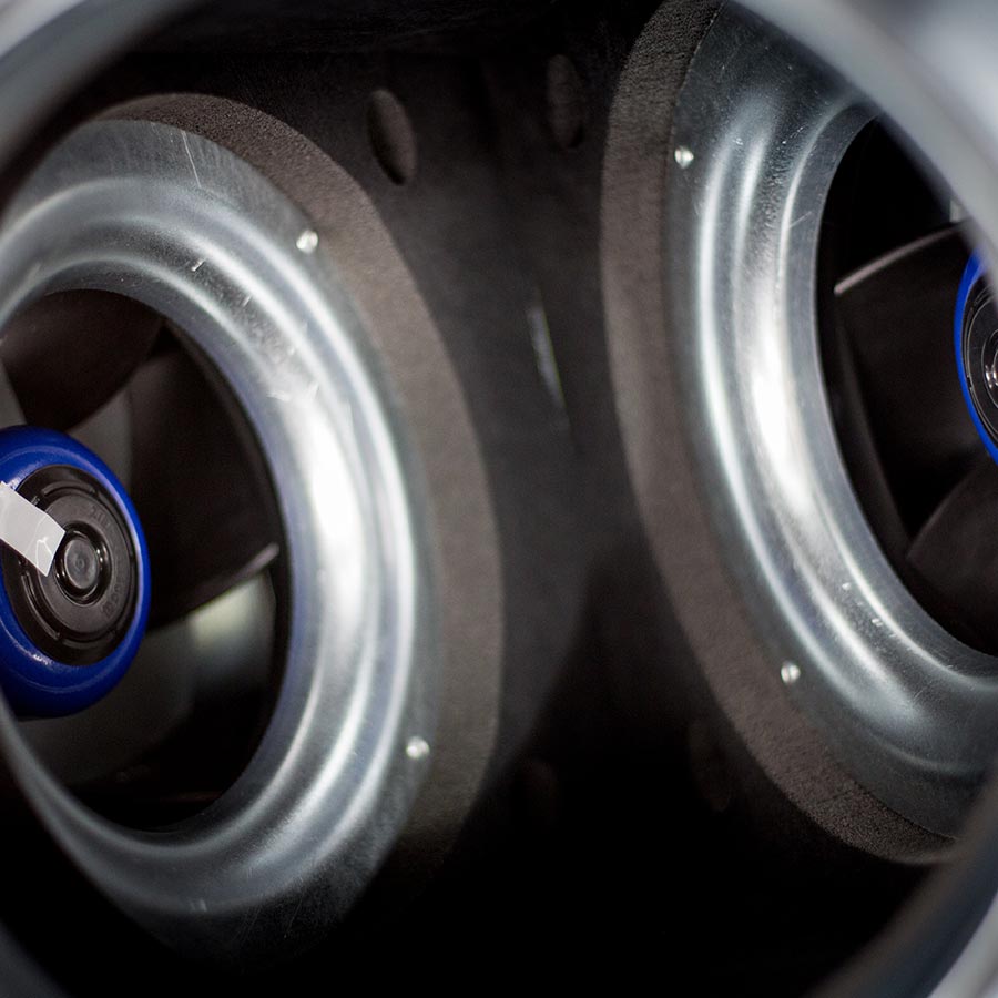 High efficiency low tonal noise backward curved centrifugal impellers are directly driven by EC external rotor motors, provide low specific fan powers and stepless speed control without tonal noise generation.