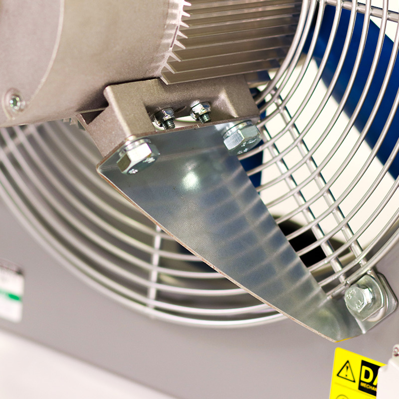 The all-metal fan casing and guard provide a long lasting and robust construction. The units have been constructed from mild steel and suitably treated to ensure full corrosion protection. The guard shall be bright zinc plated or powder coated. Fan plates shall have a powder coated polyester epoxy paint finish in Telegrey 1 (RAL 7045).