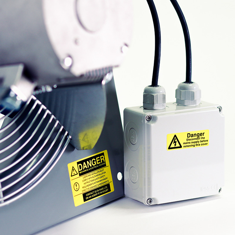 A fitted IP55 terminal box allows the fan to be positioned conveniently to incoming electrical inputs.