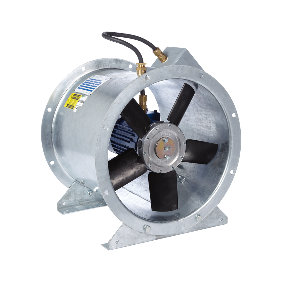 The all-metal fan casing and guard provide a long lasting and robust construction. The units have been constructed from a single sheet of steel, with both motor and axial impeller mounted within the length of the unit casing. All casing parts are heavy gauge mild steel sheet or pre-galvanised sheet steel, roll formed and welded, then hot dip galvanised to BS EN ISO 1461 after fabrication.
